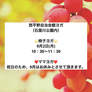 9月の西平野自治会館でのヨガの予定をお知らせします!